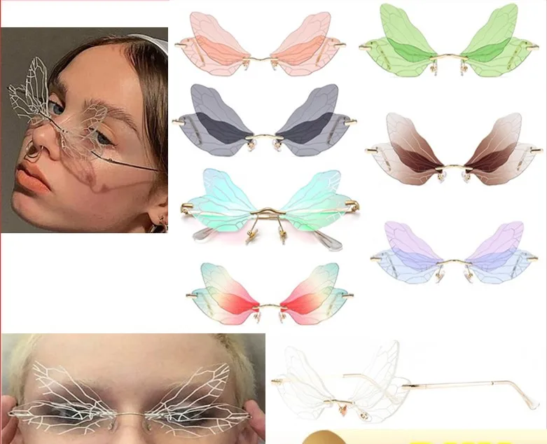Модные солнцезащитные очки со стрекозой необычные очки цветные розовые очки огонь Женские винтажные очки без оправы велосипедные солнцезащитные очки