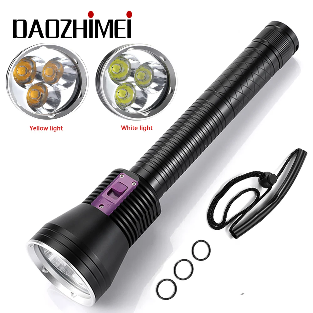Фонарик высокомощный, 8000 Люмен, 3 * XHP70.2, светодиодный фонарик для дайвинга, водонепроницаемый, для подводного погружения на 100 м, тактический фонарик для батарей 3x26650
