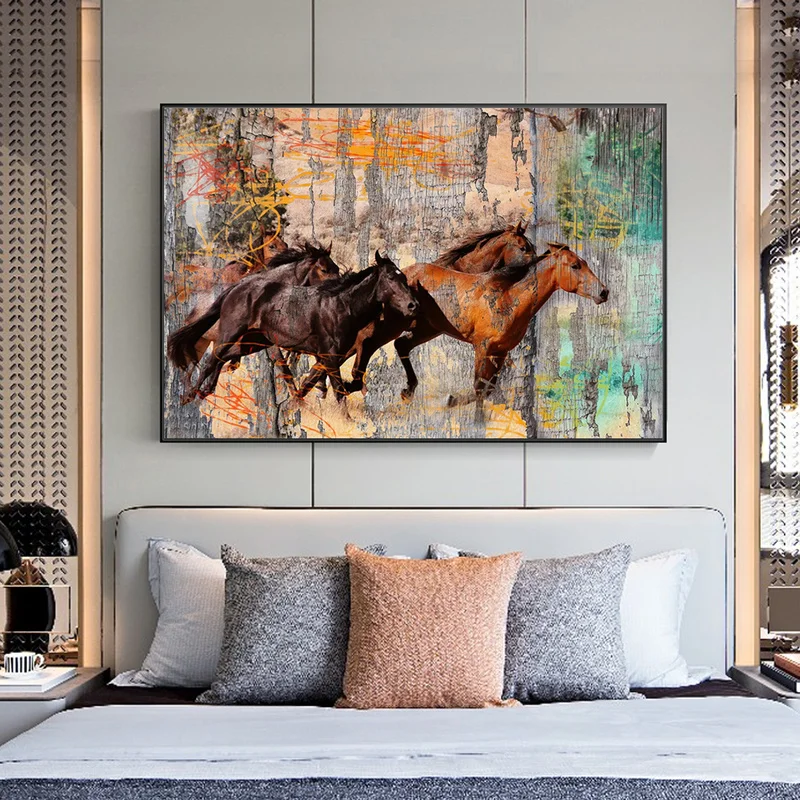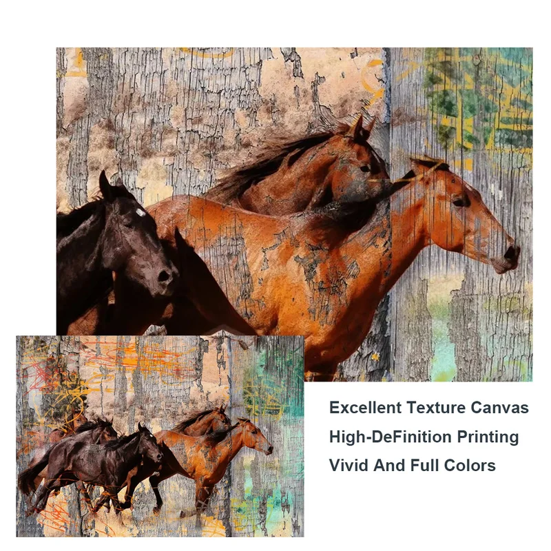Винтажные бегущие лошади абстрактный холст фотообои с животными