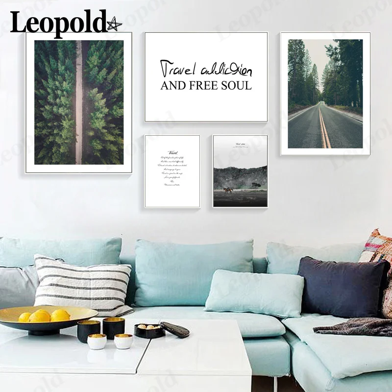 Постер на холсте, с изображением зеленого леса, с надписью рядом с природой, для украшения гостиной, дома