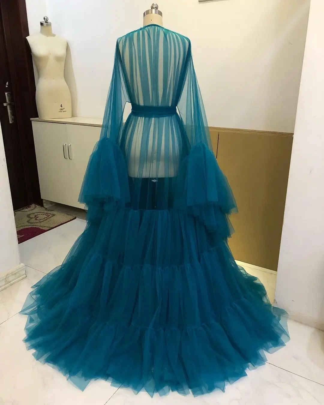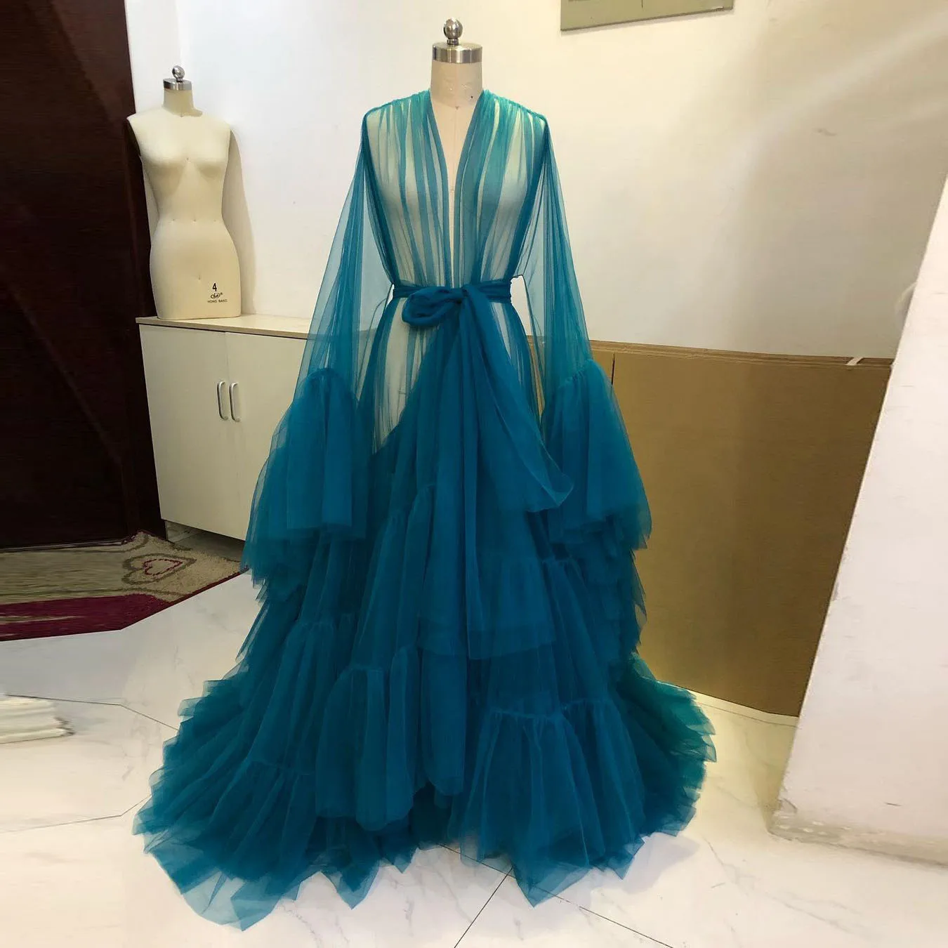 Прозрачный тюлевый халат для невесты иллюзия сексуальное платье с рукавами-фонариками длинное летнее платье для фотографии платье с оборками для беременных женщин