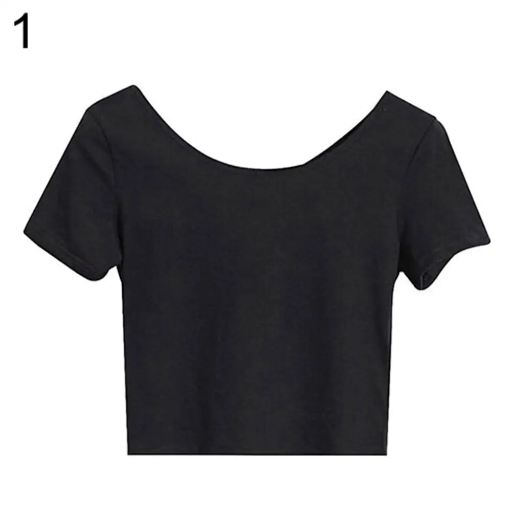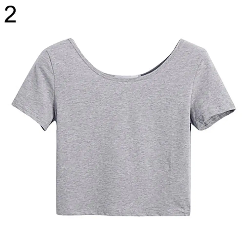 Кроп-топ женский с коротким рукавом, пикантный топ с круглым вырезом, Повседневная футболка с коротким рукавом, на лето