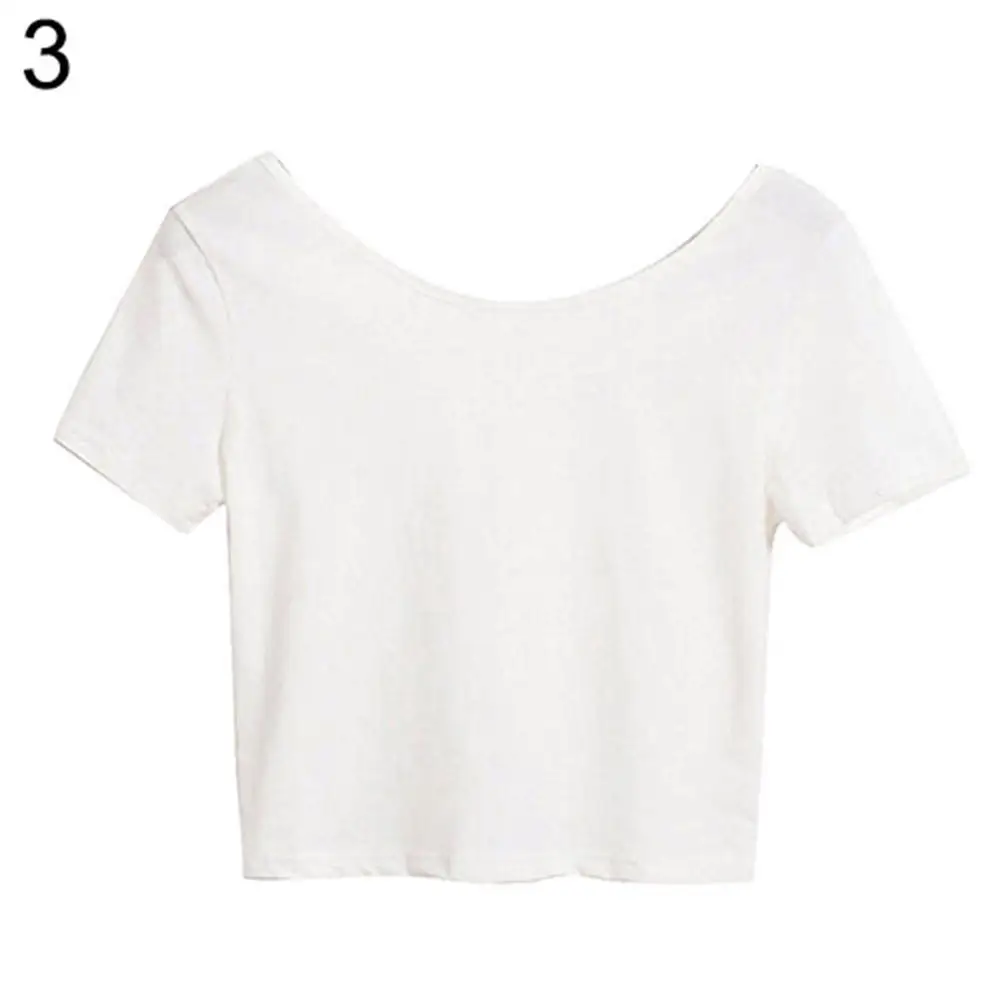Характеристики:Короткая тонкая футболка, простая, но модная.Особенности: короткий рукав, высокая талия, круглый вырез и мягкий хлопок.Легко сочетается с вашим платьем или брюками, демонстрируя вашу хорошую фигуру.Отличный выбор, чтобы сделать вас более привлекательным, очаровательным, стильным и сексуальным.