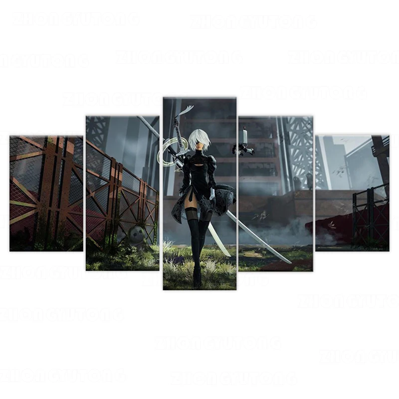 Настенное художественное полотно, игровые плакаты Nier Automata 2B, рисунок и принты, современные декоративные картины для гостиной, 5 шт.