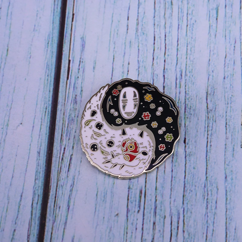 Жесткая эмалированная заколка для принцессы Mononoke No face Yin Yang