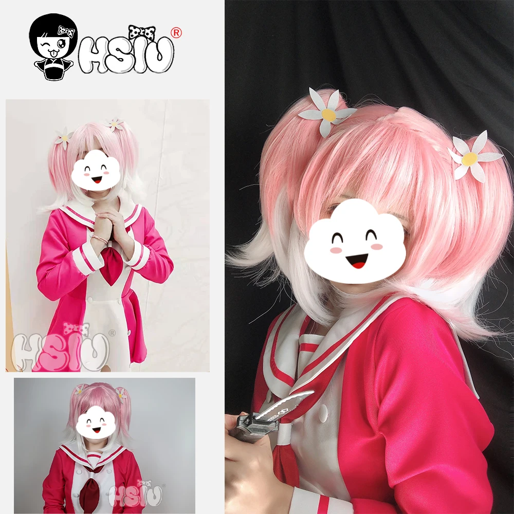 Парик HSIU Hiiragi Нана из аниме киоя онодера, градиентный розовый парик для косплея Муну на НАНУ с двойным хвостом, с короткими волосами, с шапочкой, бесплатный брендовый парик
