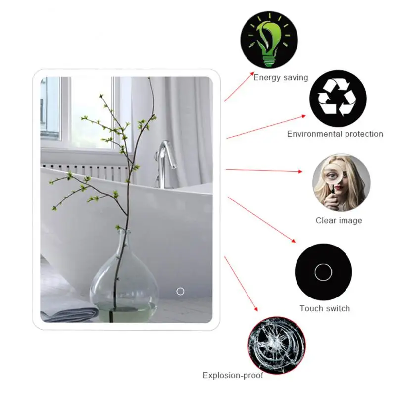 Современное зеркало для ванной комнаты с подсветкой, зеркало для туалетного столика с сертификацией времени и температуры, принадлежности для зеркала, инструменты HWC