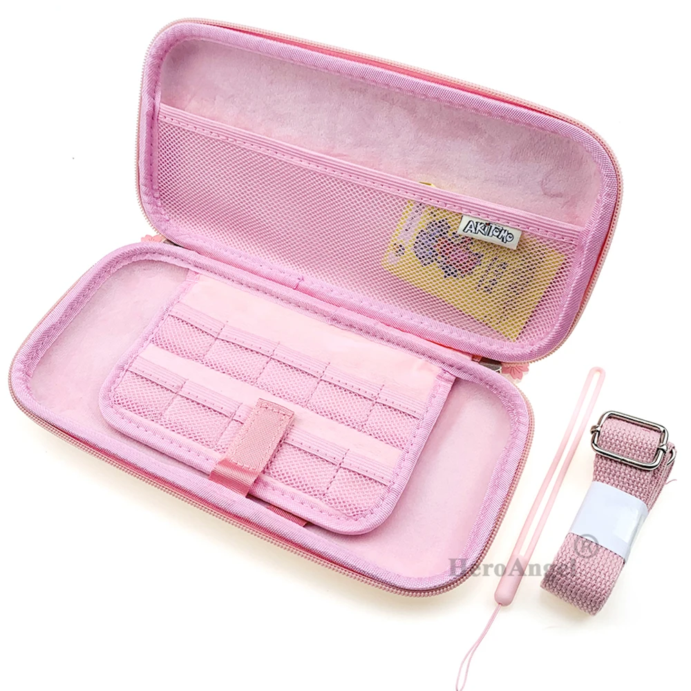 Портативный чехол для Nintendo Switch, розовый чехол, переносной дорожный защитный чехол, чехол из искусственной кожи розового цвета для переноски переключателя, чехол