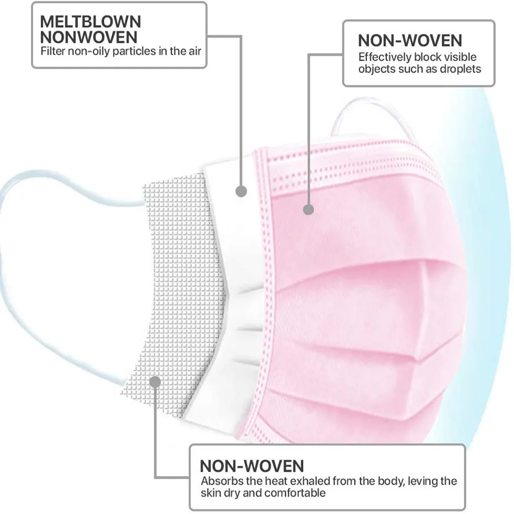 Розовая медицинская одноразовая маска, Нетканая 3-слойная медицинск...