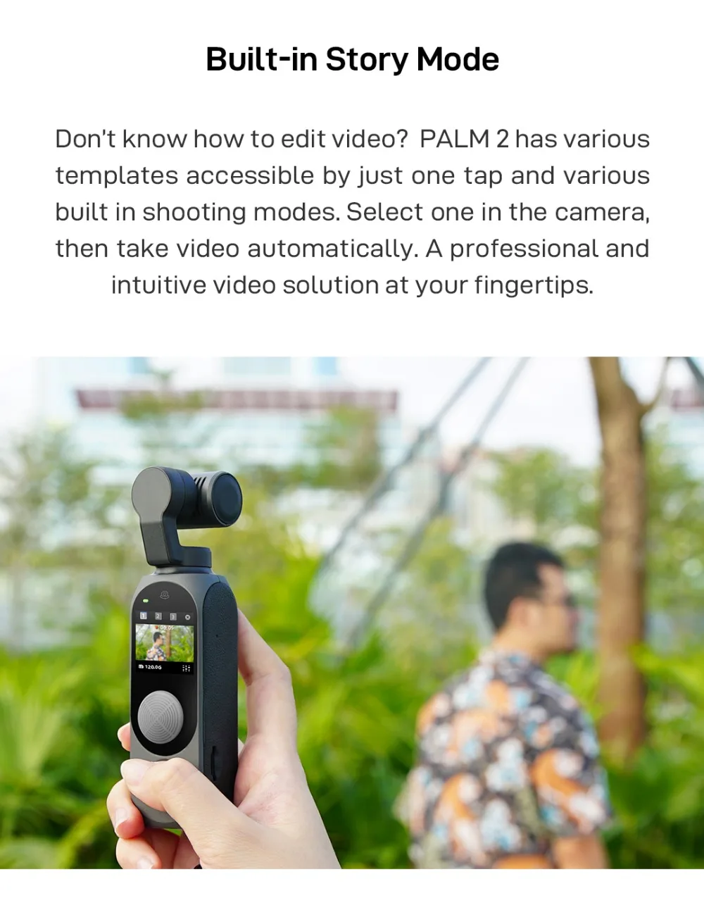 FIMI PALM 2 Gimbal камера 4K 100 Мбит/с стабилизатор 308 мин. Срок службы батареи шумоподавление микрофон Распознавание лиц смарт-трек