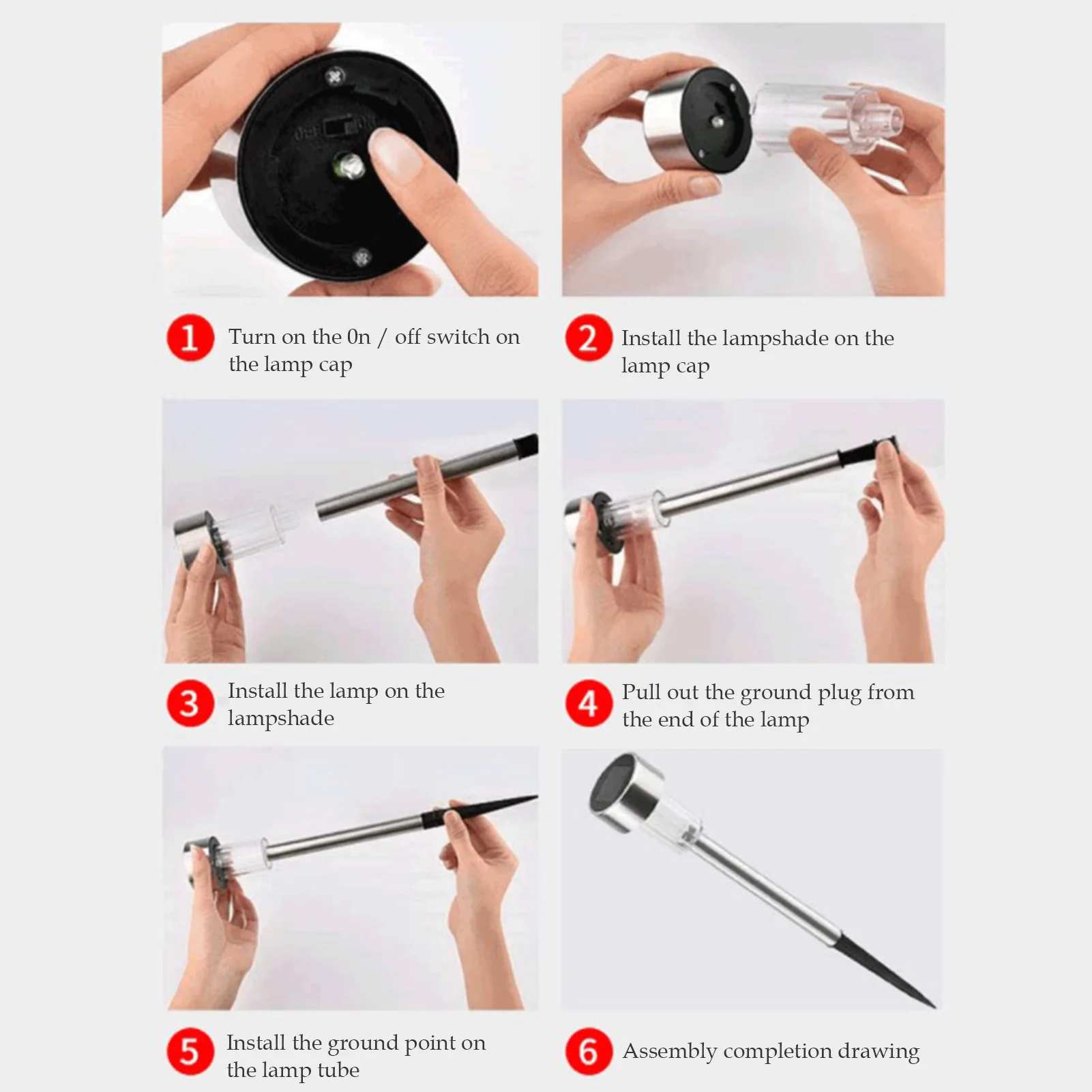 1. Высококачественные аморфные Кремниевые Солнечные панели имеют скорость фотоэлектрического преобразования до 17% и длительный срок службы.2. Защита от дождя и молнии специально разработана для улицы, без электричества в дождливые дни, нормальное освещение.3. Автоматическая зарядка в течение дня, автоматическое освещение в ночное время, без ручного управления, самопереключение, удобный дизайн.4. Прост в использовании, прост в эксплуатации, оснащен абажуром, низким энергопотреблением и энергосбережением.5. С наконечником, он может быть надежно вставлен в землю и прочно стоять.Характеристики:Название: светильник для газона SolarGardenМатериал: АБС-пластик, нержавеющая стальРазмеры: около 28*3,5 см/11,02*1,38 дюймовСпособ установки: Включите/выключите переключатель на колпачке лампы, установите абажур лампы на колпачок лампы, Установите лампу на абажур лампы, вытяните заземляющий наконечник из конца трубки и установите заземляющий наконечник на лампу.Упаковочный лист:10 * светильник на солнечной лужайкеПримечание:1. Из-за проблем с световыми эффектами и углами съемки, в продукте будут определенные допуски, пожалуйста, поймите.