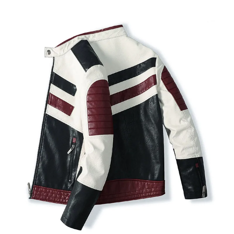 Мужская мотоциклетная кожаная куртка в полоску, куртка из искусстве...