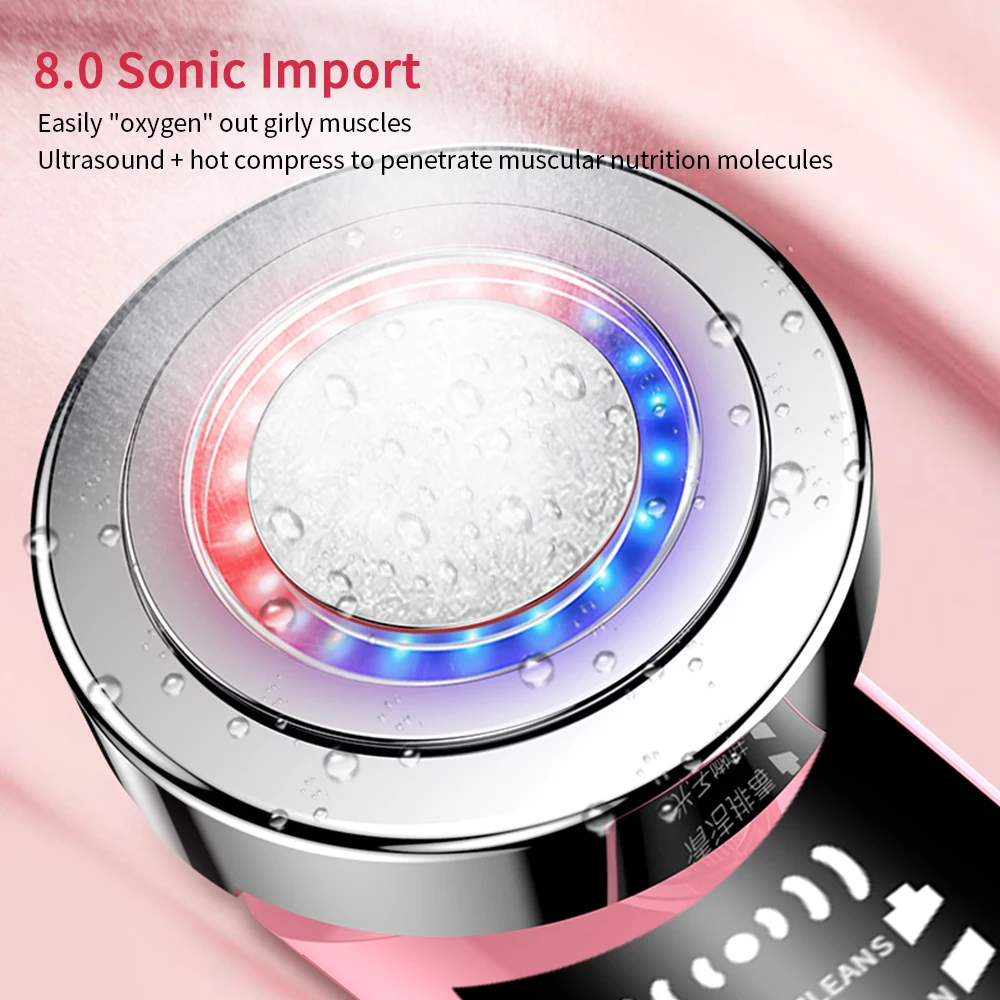Функция: глубокое очищение, активация и омоложение кожи, улучшение контуров лица, косметический инструмент для лица, который объединяет положительные и отрицательные ионы + тепло + микро вибрация + красный светильник