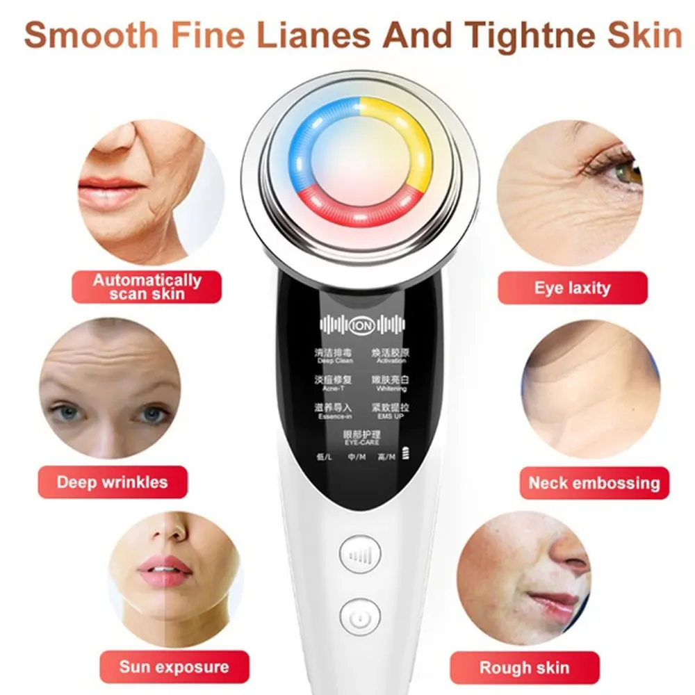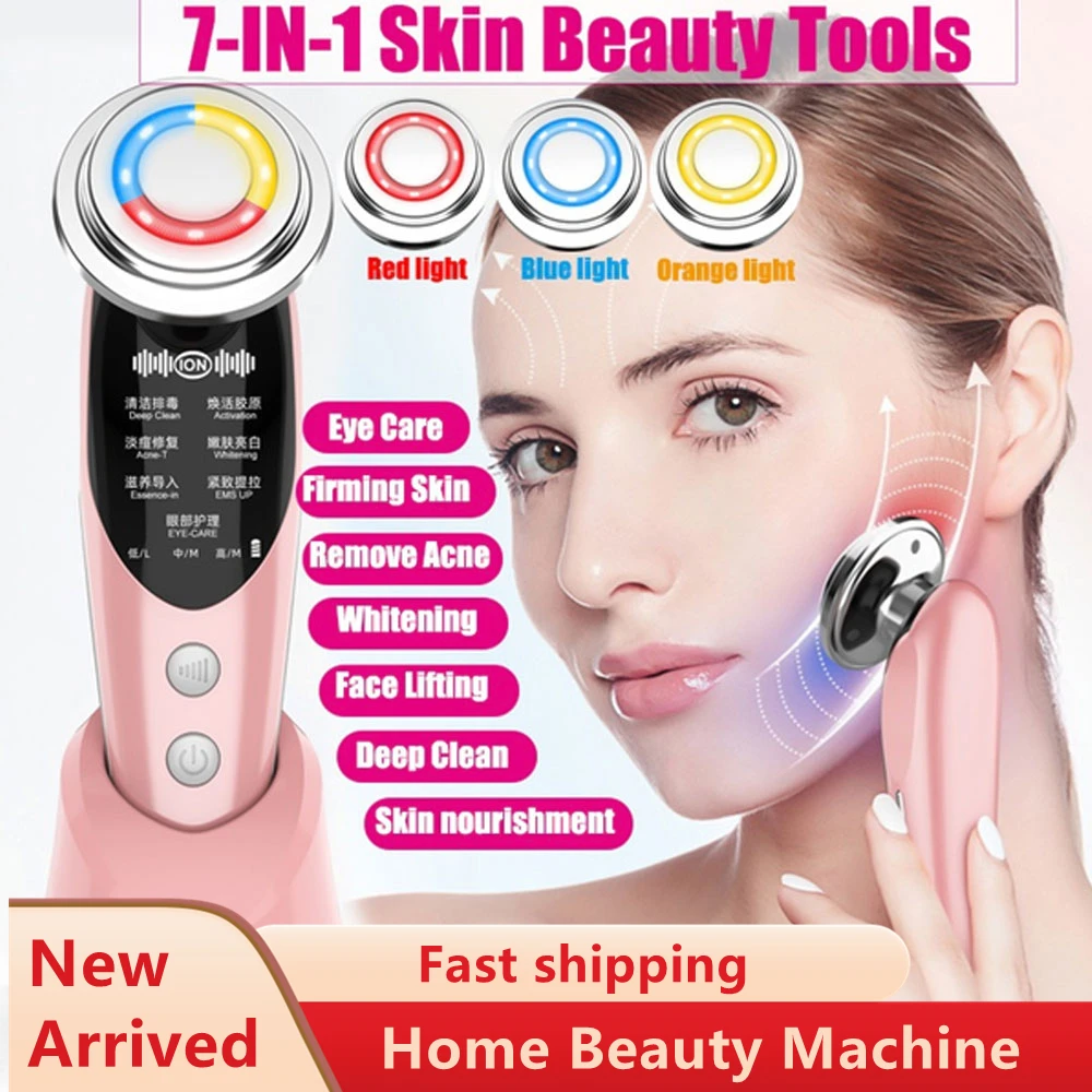 Светодиодсветильник для лица 7 в 1, омоложение кожи лица, лечение морщин, лифтинг, подтяжка кожи, уход за кожей