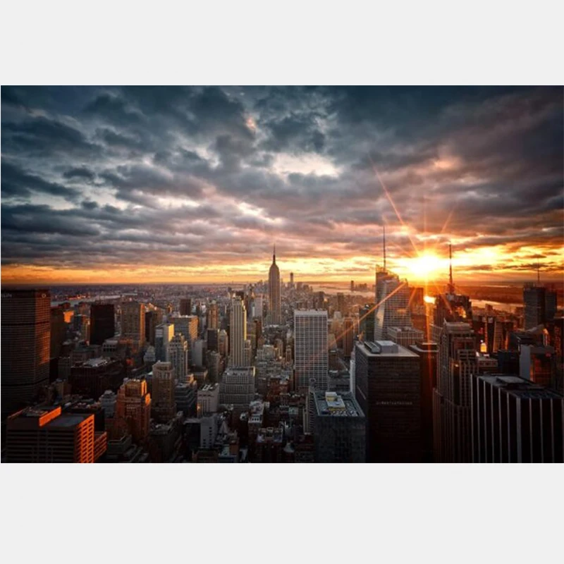 Холст с изображением заката, Нью-Йорка, настенные картины, художест...