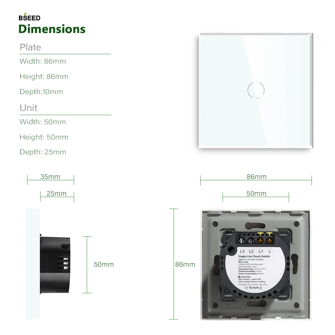 Bseed Mvava 1 банда 1 способ ЕС Россия стандартный светильник сенсорный выключатель Черный Белый Серый Золотой с новым хрустальным стеклом панель задний светильник 86 мм