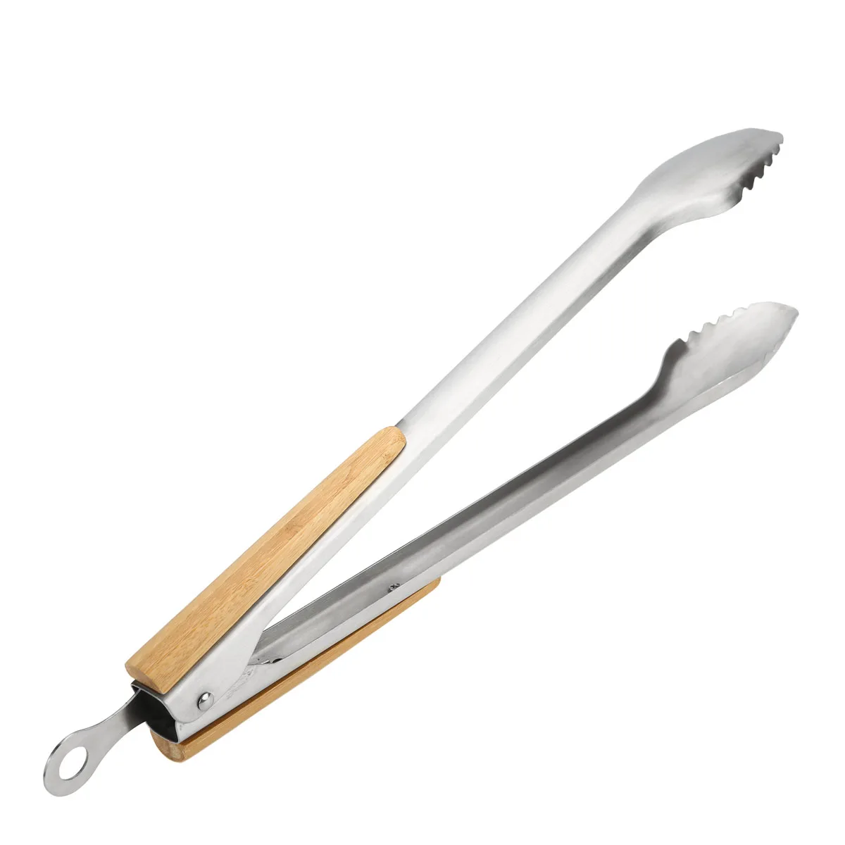 Щипцы для барбекю, гриль, нержавеющая сталь, деревянная ручка, для ...