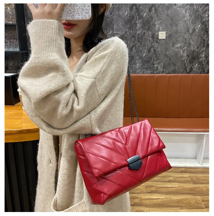2021 Новые повседневные сумки через плечо с цепочкой для женщин, модная простая сумка на плечо, женские дизайнерские Сумки из искусственной кожи, сумки-мессенджеры