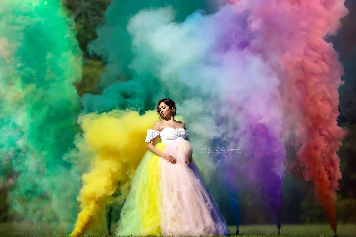 Разноцветный тюль, платья для будущих мам, Cao рукава Милая очень Пышное Бальное Платье из мягкого Радуга тюль Свадебные Беременность платье