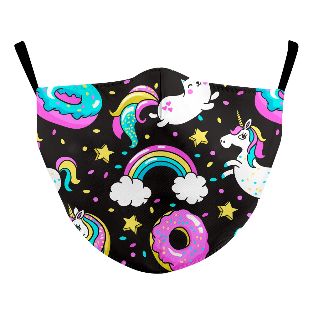 Детская маска с принтом радуги и единорога, многоразовая моющаяся хлопковая маска для лица с веселыми звездами, ветрозащитные дышащие маски