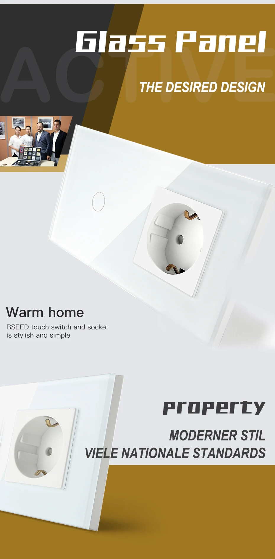 Сенсорный выключатель BSEED, 1 комплект, 1 канал, 2 канала, настенный выключатель по европейскому стандарту, розетка с 3 цветами, сенсорный выключатель из хрустального стекла