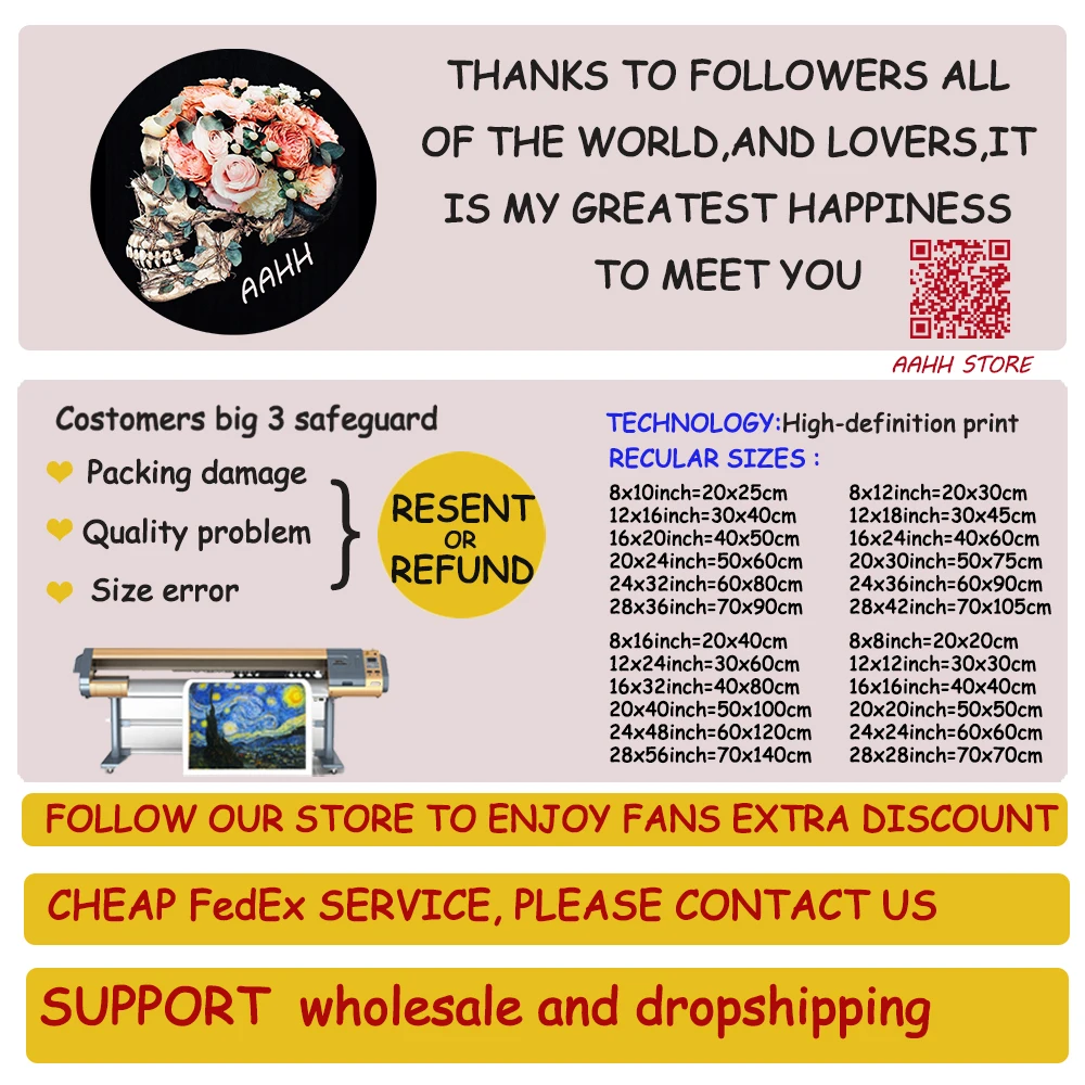 5. Этот холст отличного качества без внутренней и внешней рамки, чтобы сохранить стоимость доставки, но этот размер является обычным размером фоторамки, и вы можете легко получить готовую рамку.