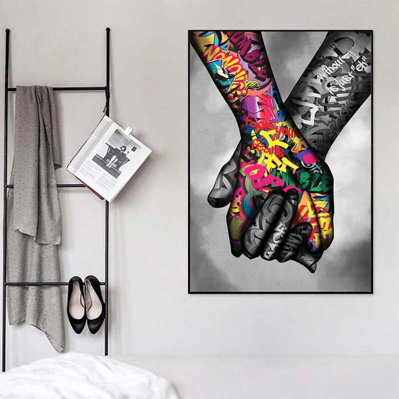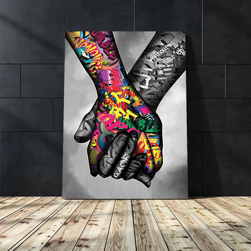 AAHH граффити Искусство Холст Картина влюбленные руки уличное искусство настенные постеры и принты жест искусство стены картины для декора гостиной