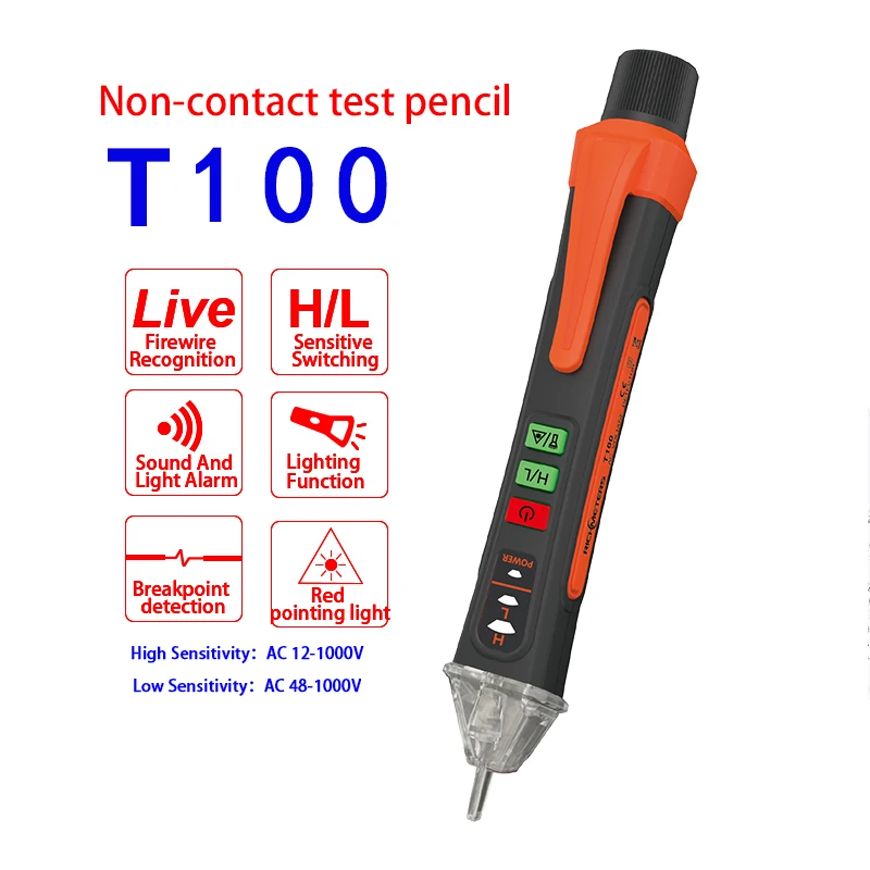 Бесконтактный Тестер напряжения 12-1000 В, Бесконтактный детектор напряжения переменного тока, тестер цепи, электрический индикатор, ручка, фонарик, звуковой сигнал
