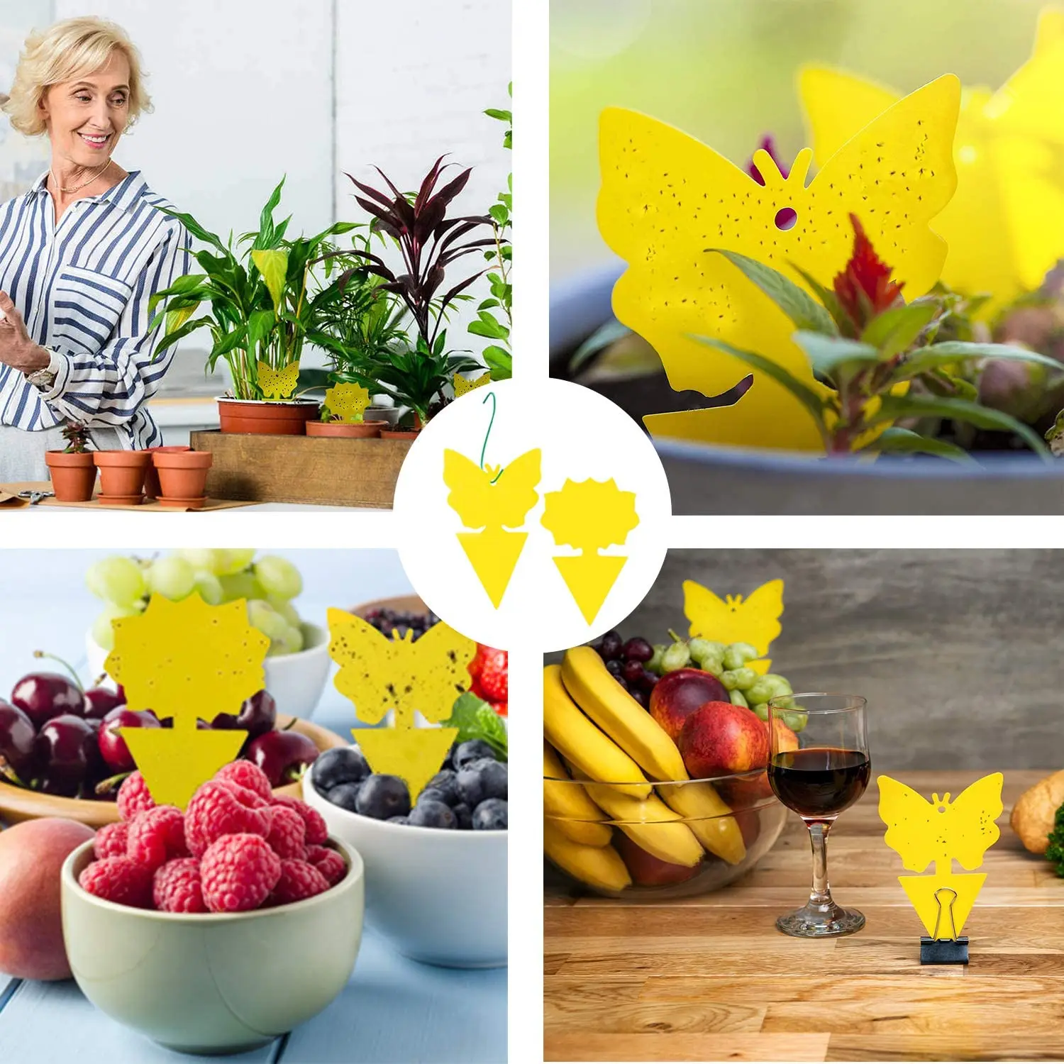 24 шт. липкий фруктовый мух и грибковый инсектицид желтый липкий насекомый инсектицид подходит для комнатных и наружных комнатных растений
