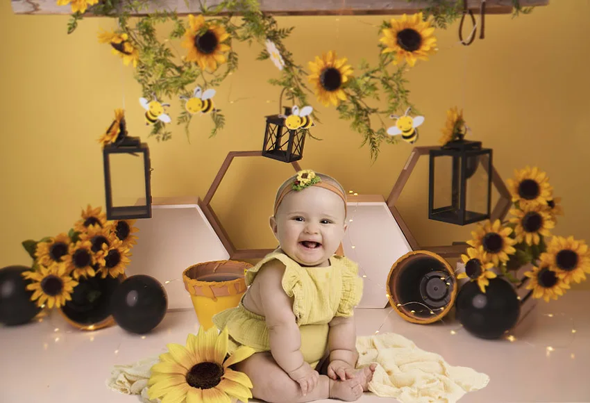 Фон для фотосъемки Mehofon с изображением подсолнуха пчелы меда банки для девочек празднование Дня Рождения Торт разбивание новорожденных вечеринка в фотостудии icon star icon star icon star icon star icon star