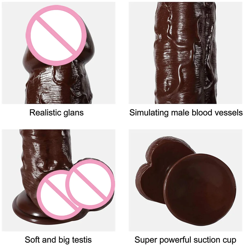 Темно-коричневый фаллоимитатор с 8,3 дюйма, супер-в натуральную величину, Вставная длина до 8 дюймов. Красивые гланы, 2 больших яичка и реалистичные вены для потрясающего вида и реалистичного ощущения. Этот изысканный фаллоимитатор был разработан для девушек, которые преследуют конечное удовольствие