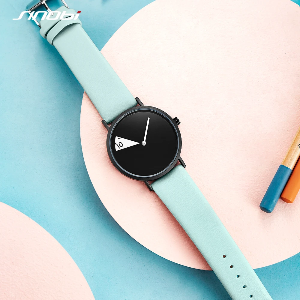 Часы наручные SINOBI женские, модные креативные Спортивные кварцевые, с вращающимся кожаным ремешком