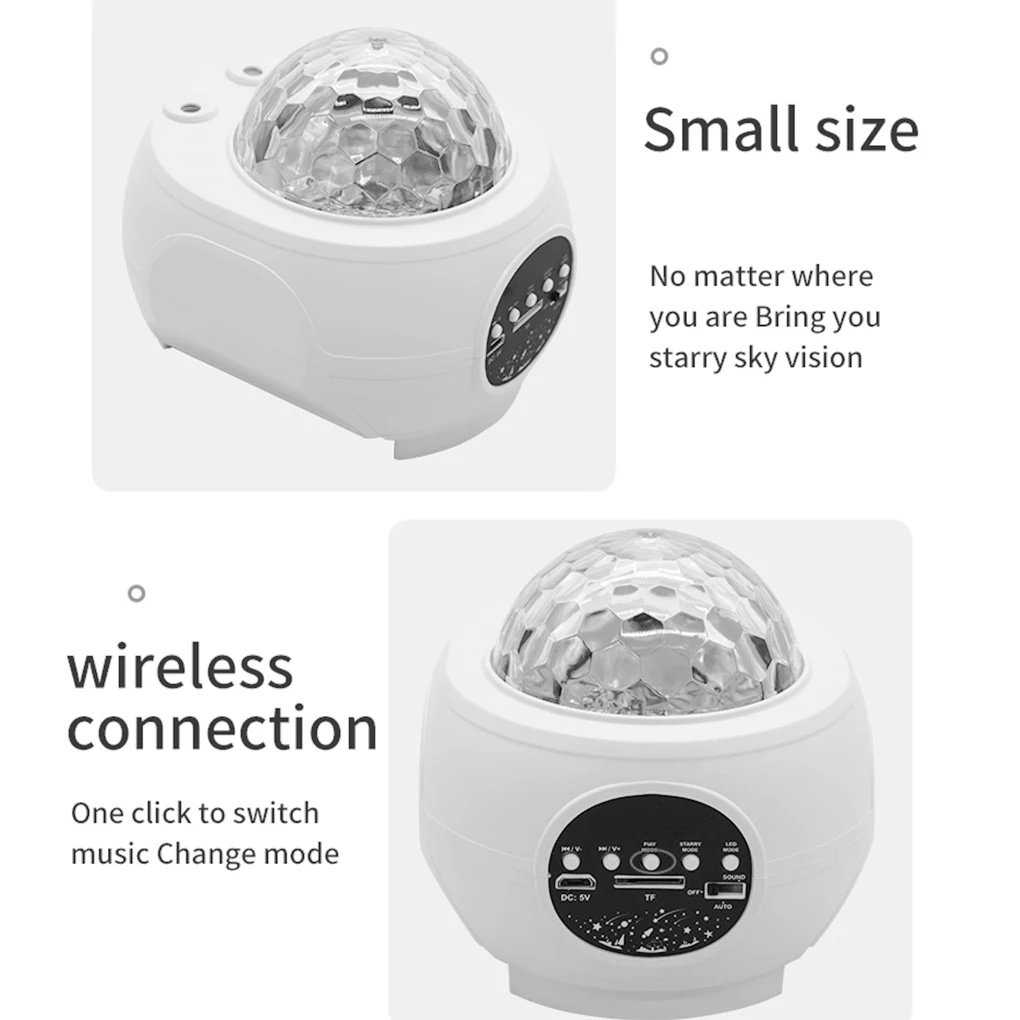 Описание:Ночник-проектор удобен в использовании, рисунок водяных волн, скорость, цвет и яркость можно легко регулировать.Лампа для проектора RGB удобна в подключении и легко подключается к телефону.Прожектор с дистанционным управлением может воспроизводить музыку. Вы можете подключить его к телефону или вставить u-диск для воспроизведения музыки и режим музыки можно легко отрегулировать.Свет проектора bluetooth содержит 10 режимов освещения, небольшой и компактный, легко разместить и хранить.Вы можете использовать этот проектор в качестве домашнего украшения, спящего света. И прожектор подходит для домашней вечеринки, дня рождения и т. д.