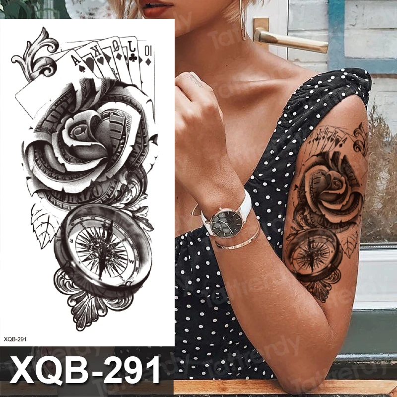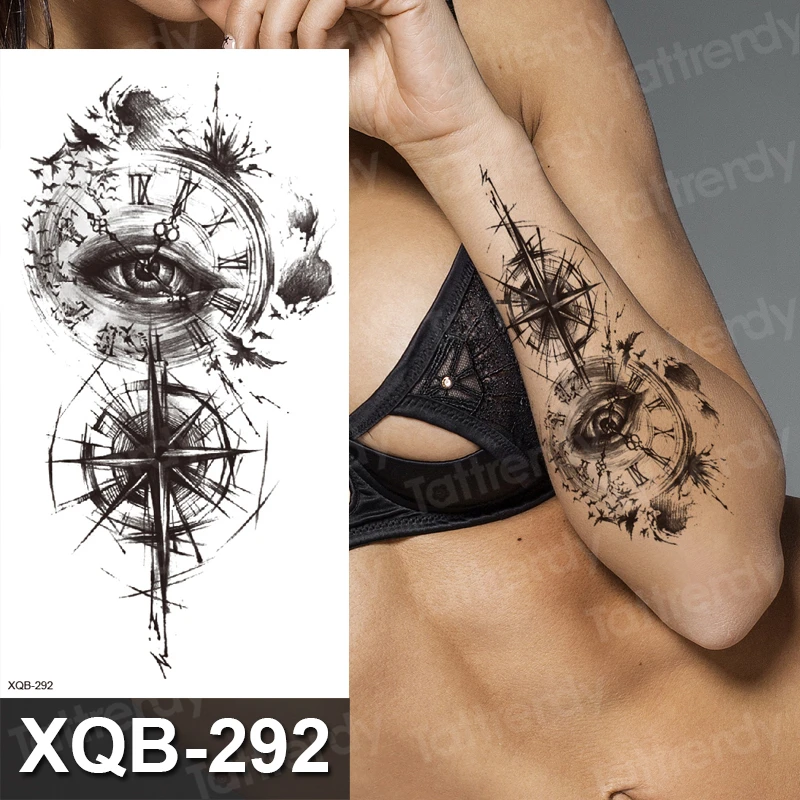 Водостойкие временные тату-наклейки с компасом, поддельные тату, боди-арт флэш-тату, татуаж рук, рук, спины, стоп, тату для девочек, женщин, мужчин