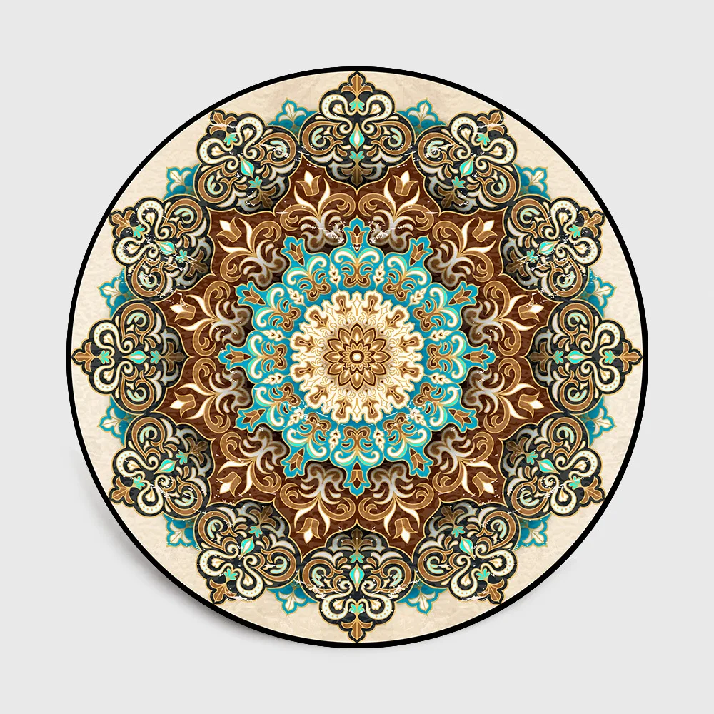 Европейский этнический стиль синий коричневый верблюжий цвет мандала цветок круглый гостиная спальня нескользящий коврик ковер на заказ