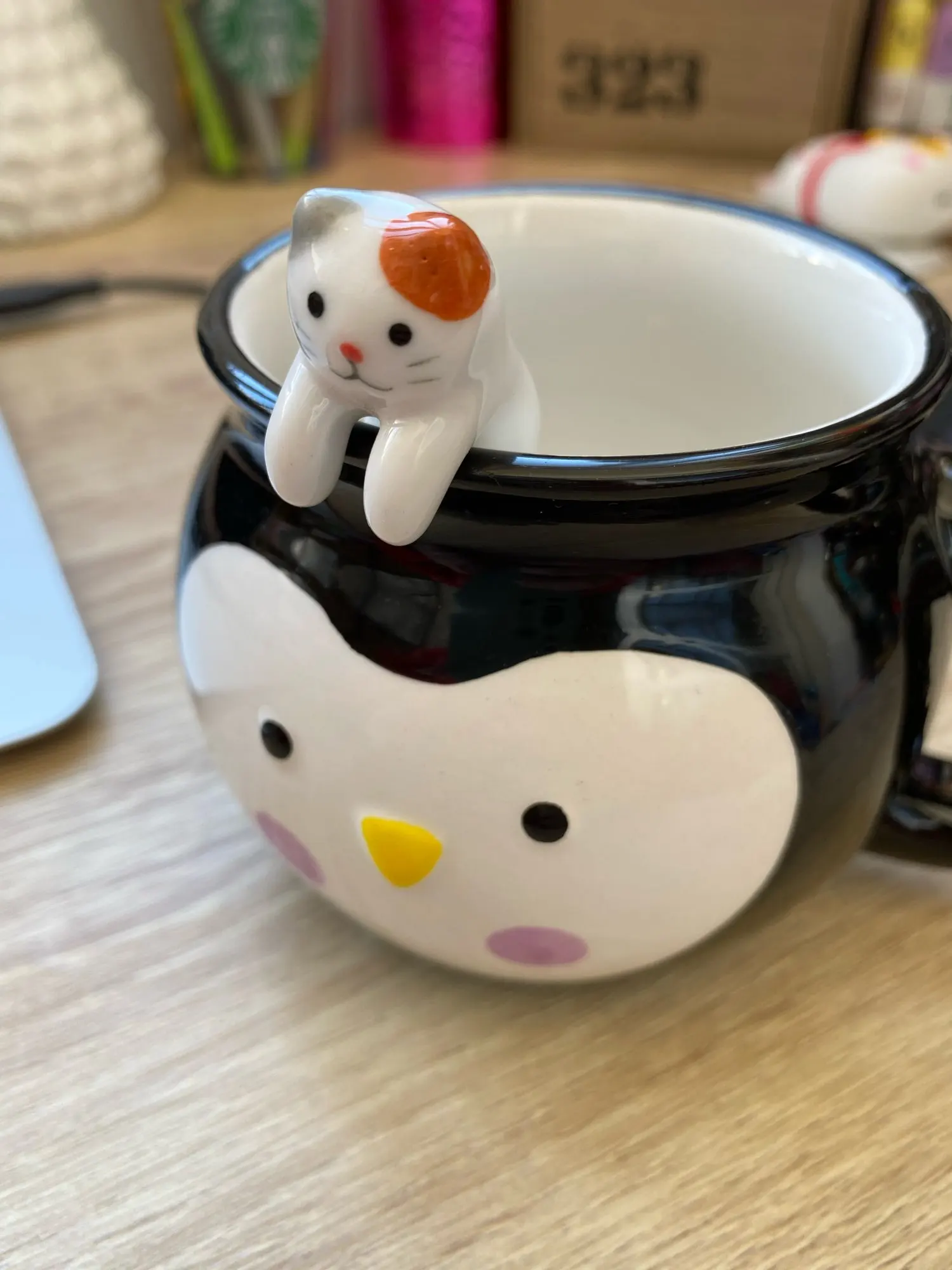 Прикольно. Но кружка должна быть высокой, что бы ложка висела на лапках.