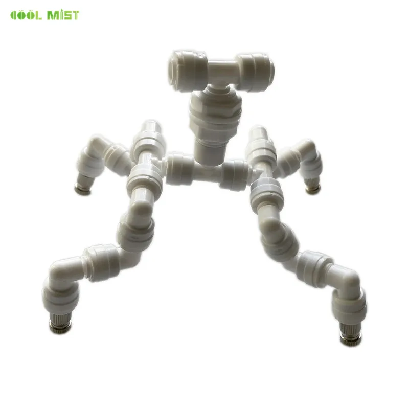 4. Прикрутите запотевающие насадки к фитингам тройника, за исключением последнего на торцевой вилке.