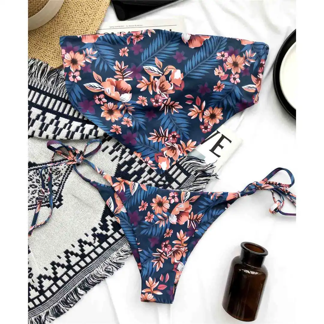 2021 цветочный бикини пуш-ап купальный костюм женский комплект из д...