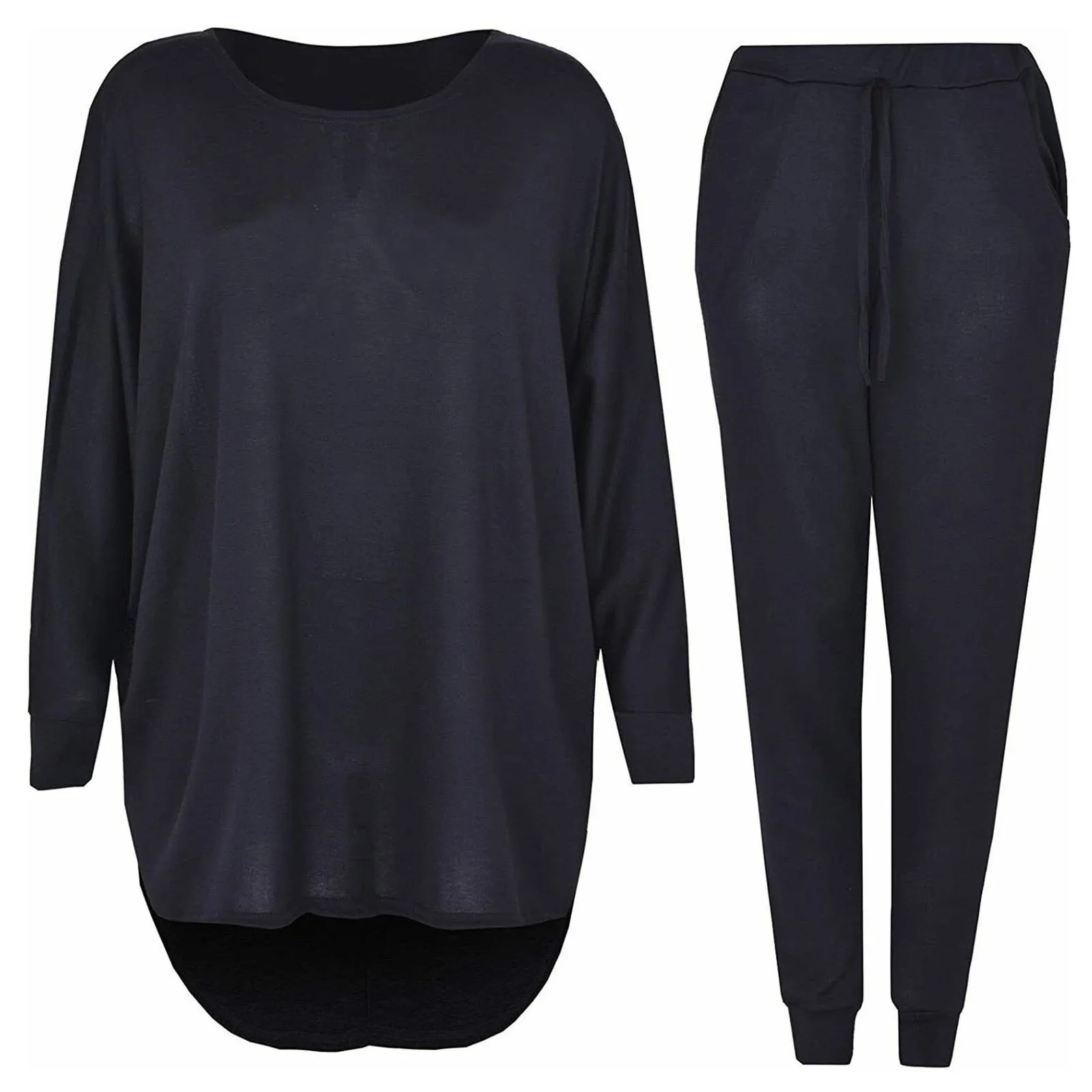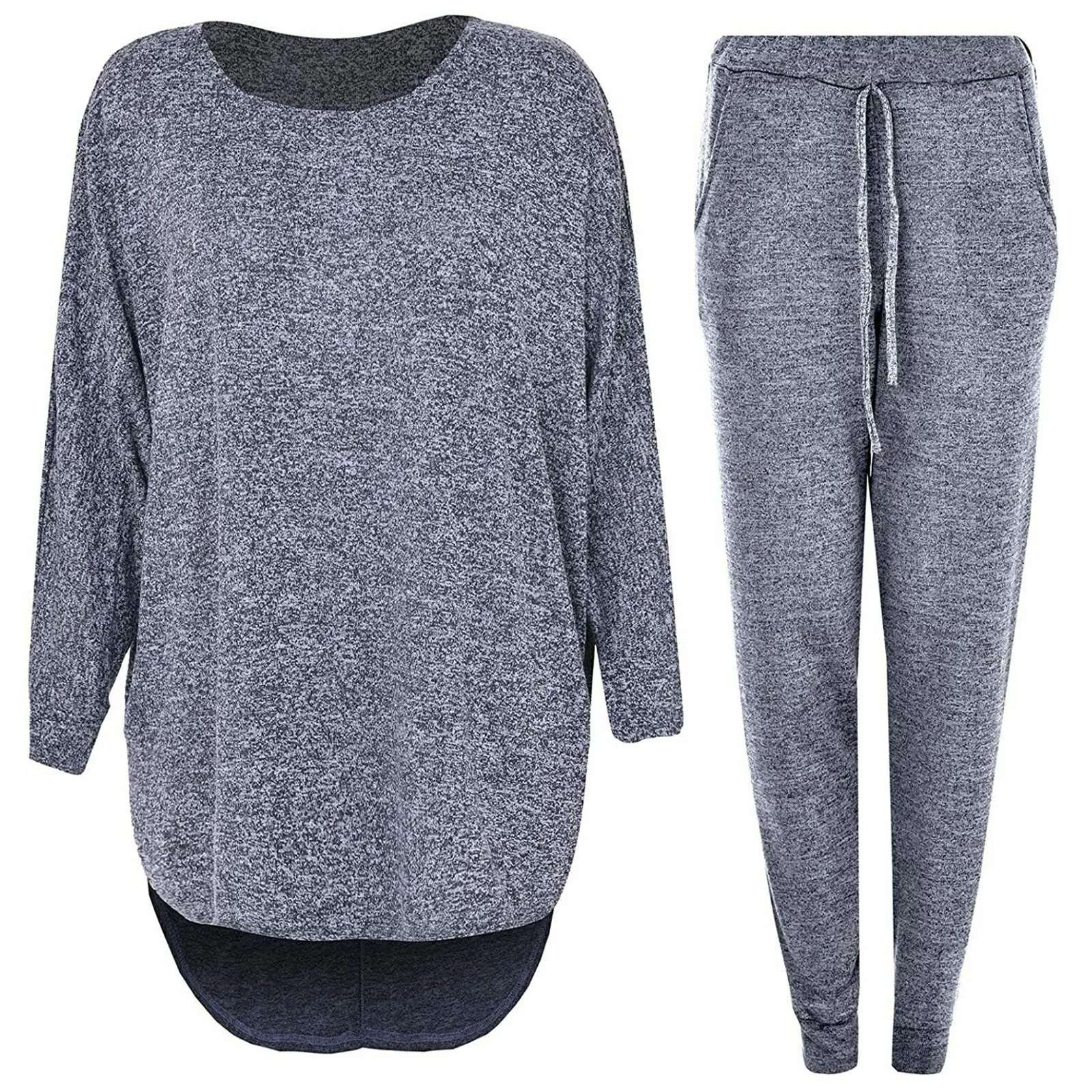 Женский Спортивный Костюм, модная повседневная Однотонная рубашка большого размера с круглым вырезом, блузка и брюки с карманами, Женский Костюм