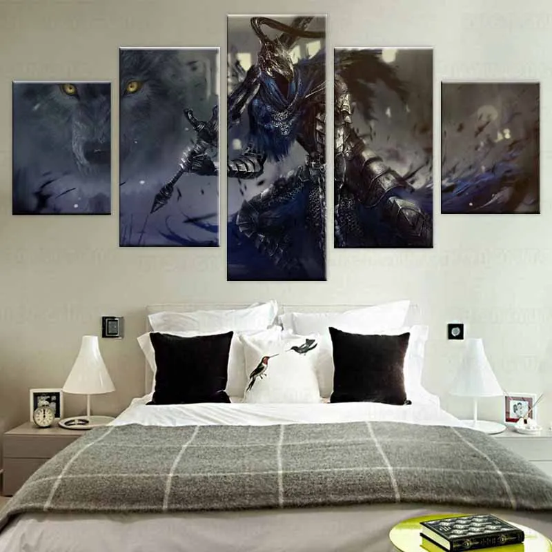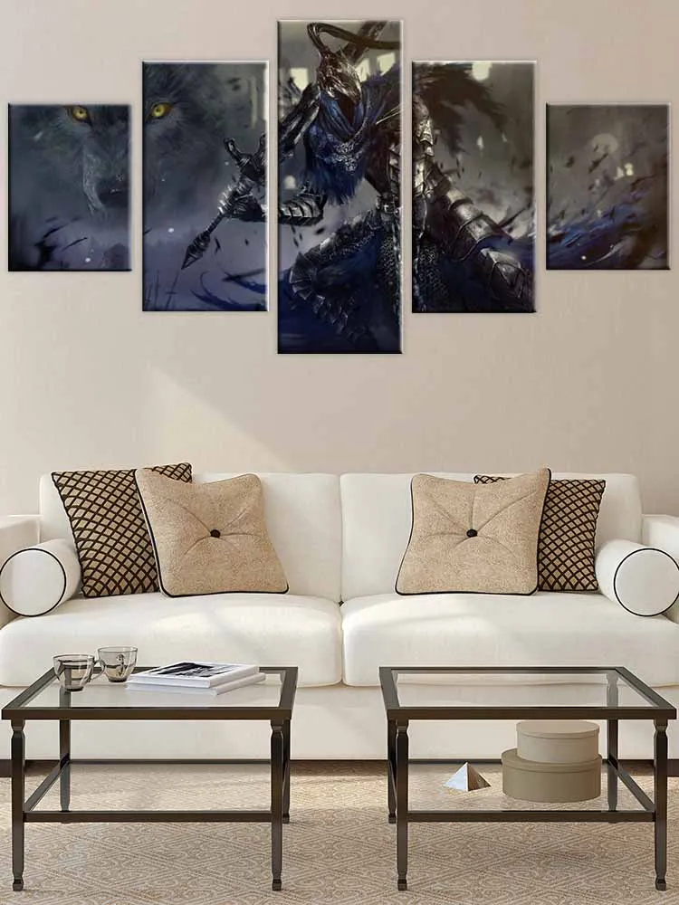 Модульная картина, домашнее декоративное настенное искусство, рисование, 5 панелей, игра, Темные души, воин, HD плакат для современных искусств