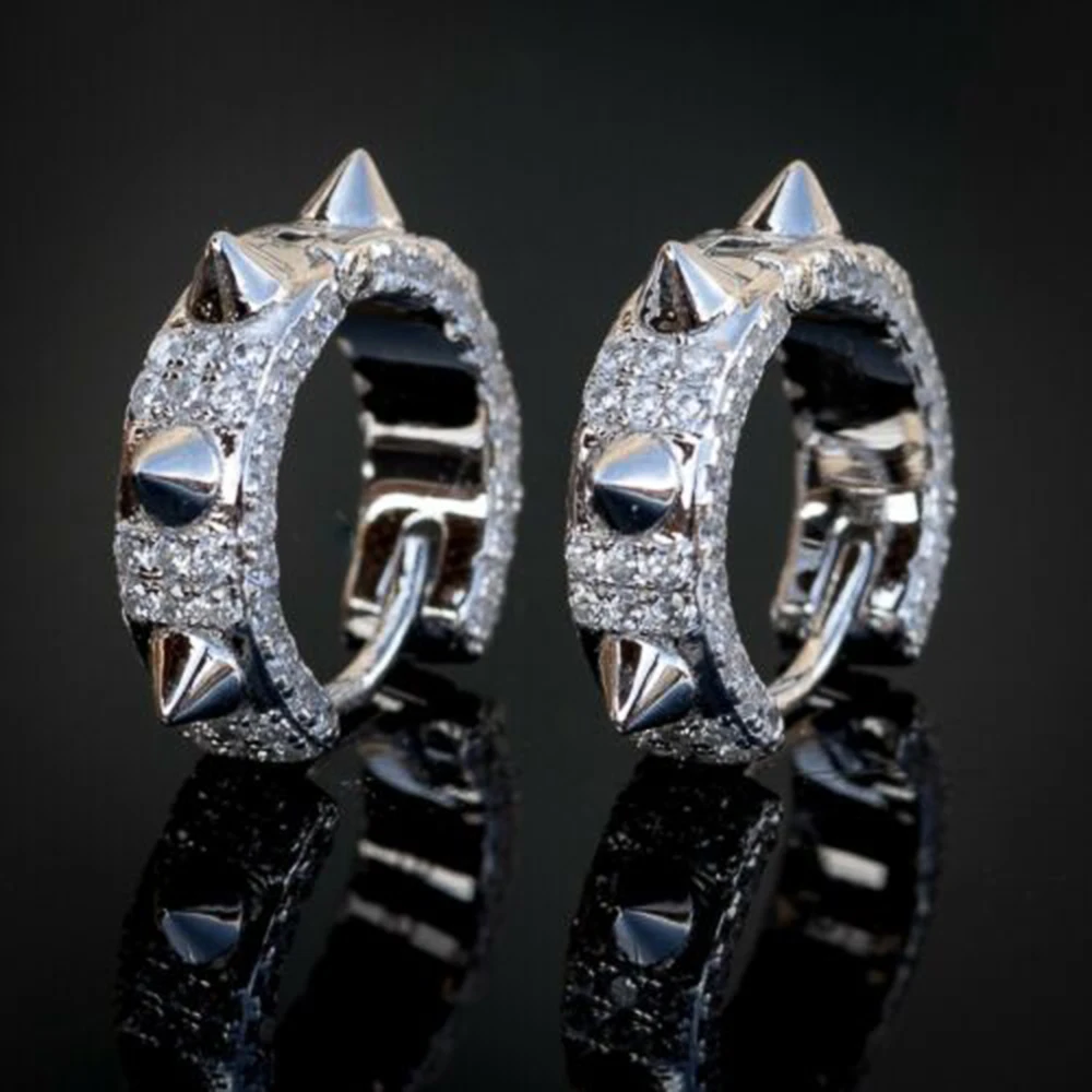 Серьги-кольца женскиемужские, круглые, с фианитами