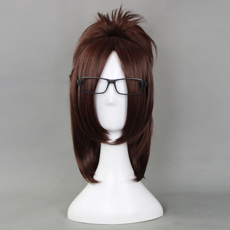 Парик для косплея «Атака Титанов» Hange Zoe, 40 см, короткие прямые коричневые женские парики из искусственных волос, парик, шапочка, очки для косплея