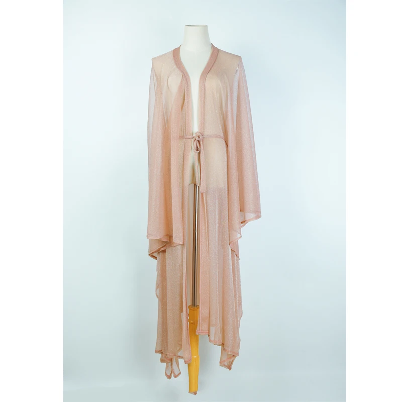 Женское прозрачное пляжное платье с поясом, накидка с длинным рукав...
