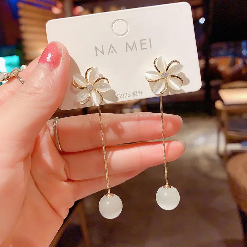 Серьги с опалом и цветком XIYANIKE, корейские темпераментные серьги, Длинные французские модные серьги, изысканные роскошные
