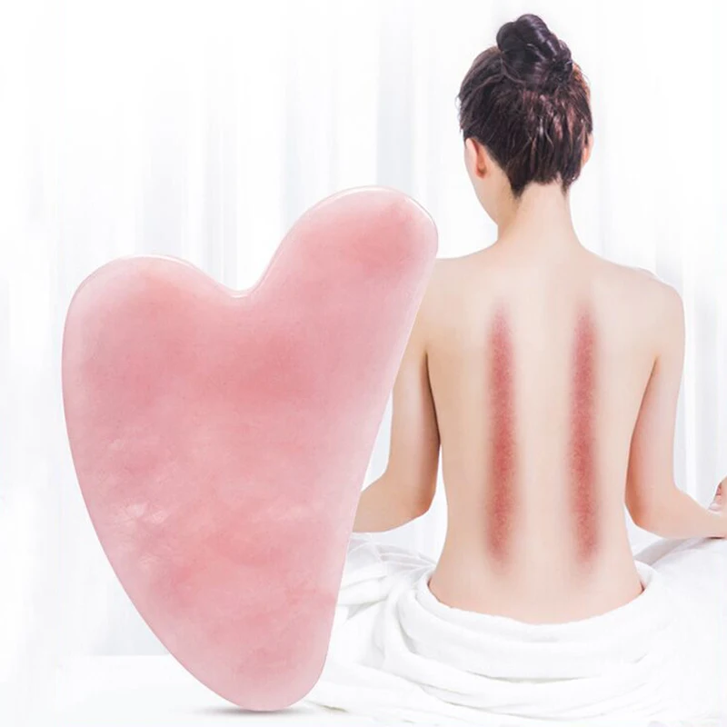 Натуральный розовый кварц гуашь скребок нефритовый Gua Sha доска пластина гуаша камень массаж лица массажер инструмент для лица шеи спины тела