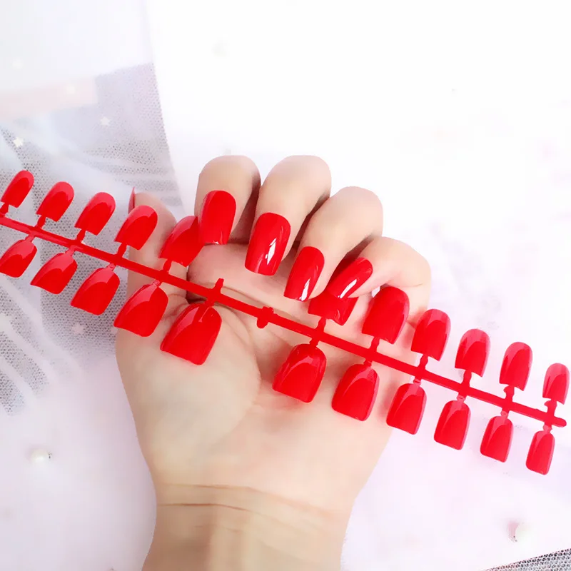 Модные длинные плоские УФ-гель-клей 32 цвета, однотонные накладные ногти, многоразовые квадратные накладные ногти с клеем, стикер