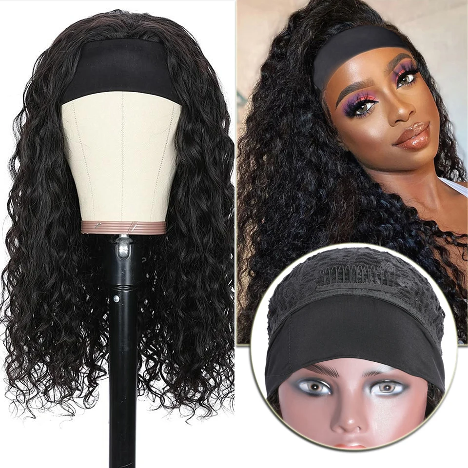 Водная волна парик с головной повязкой парики из натуральных волос ...