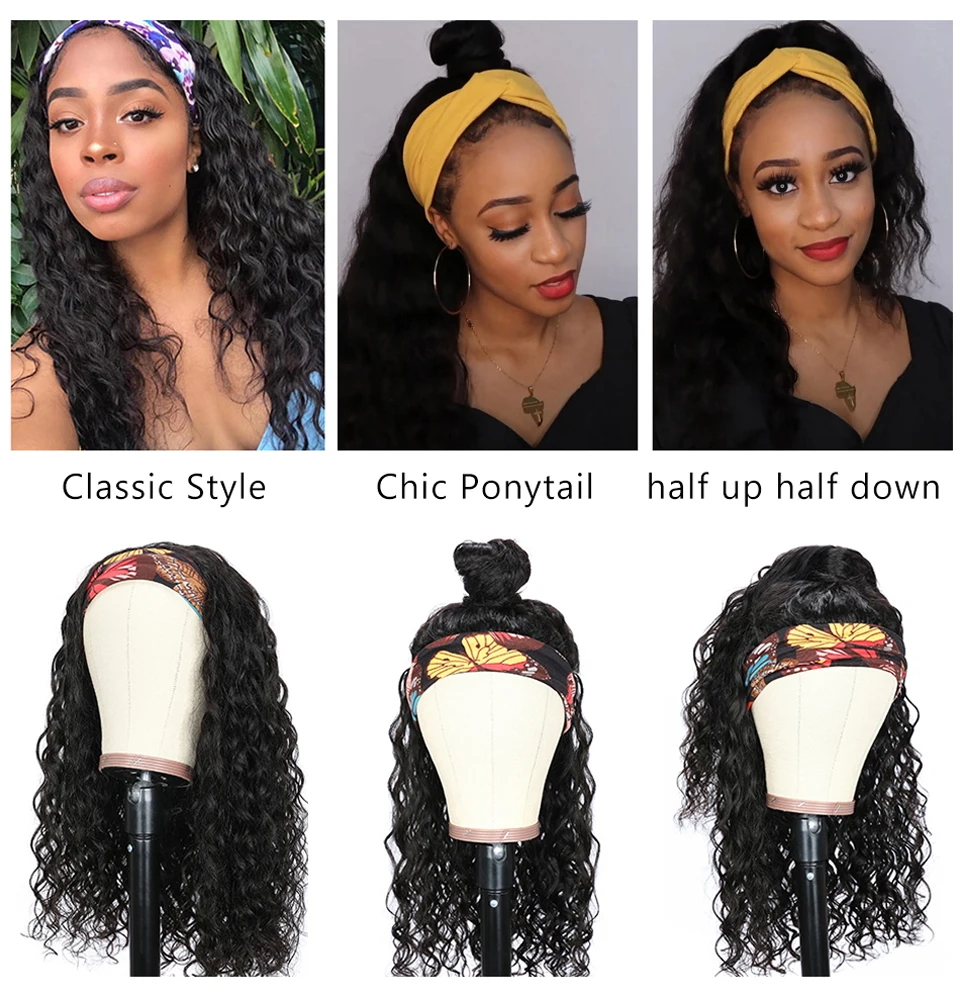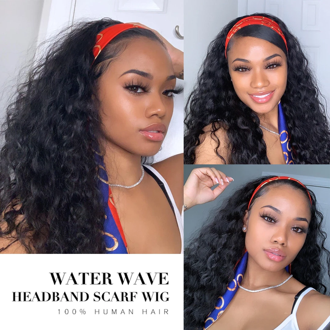 Wigirl глубокая волна парик с головной повязкой человеческие волосы...