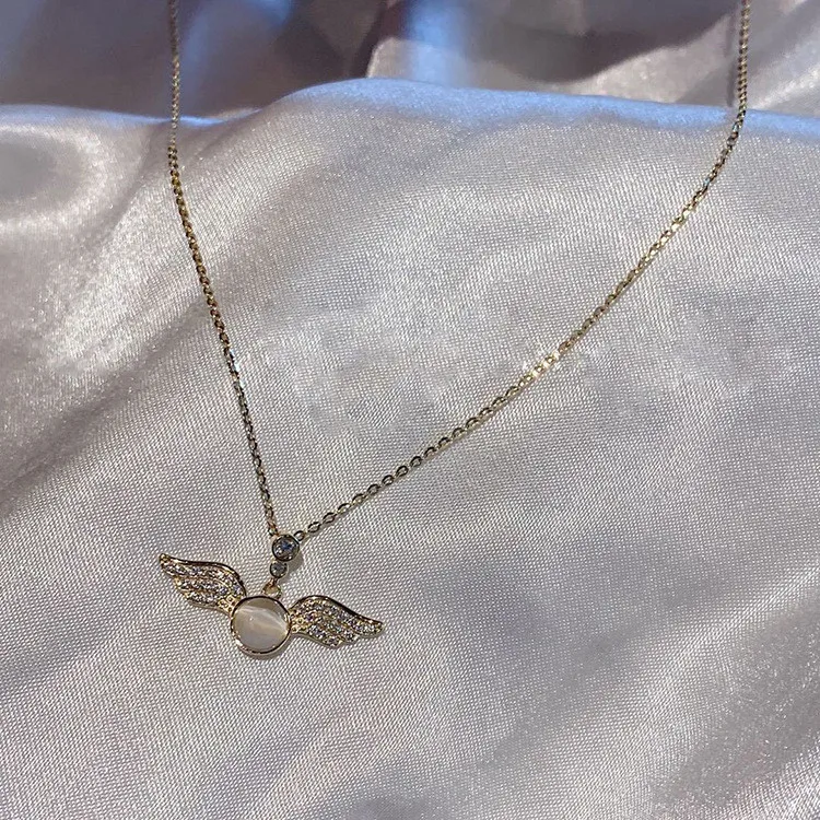 Женский кулон с крыльями ангела, инкрустированный микро цирконием, ...