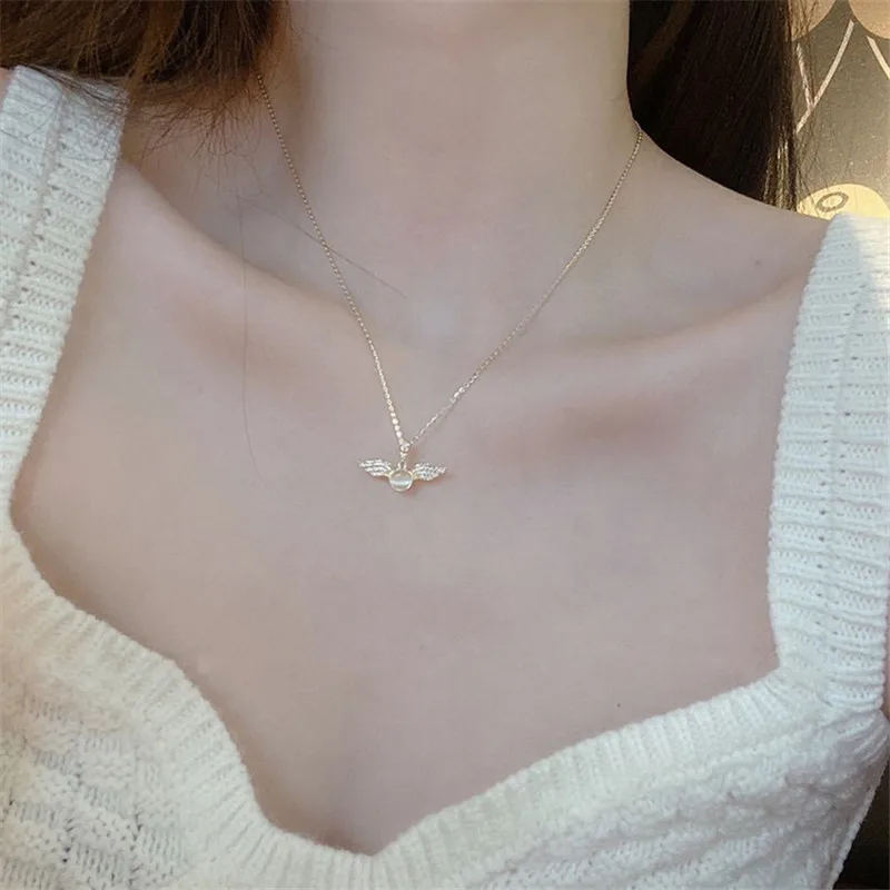 Ожерелье из стерлингового серебра 925 пробы для женщин Подвеска крыло с кристаллами подвеска элегантные ювелирные изделия для свадебной вечеринки dz276